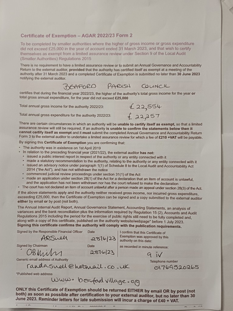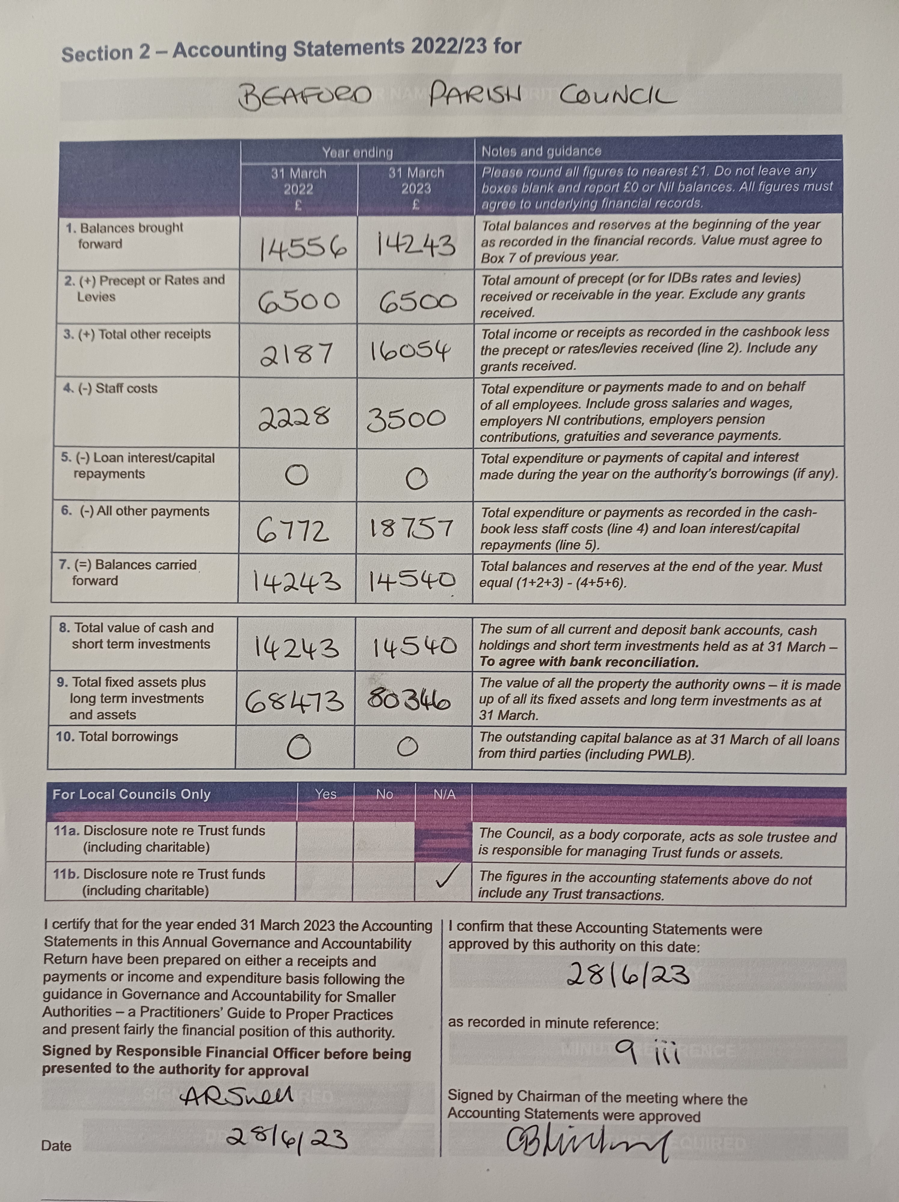 2023 Agenda 18-1-23Download minutes 18_01_2023Download Agenda 22_02_2023Download Minutes 22_02_2023Download Agenda 29.3.23Download Agenda 26_04_2023 Beaford ANNUAL PARISH MEETINGDownload minutes 26_04_2023 APMDownload Agenda 26.4.23 to follow APMDownload Minutes 26_04_2023Download Agenda 24.5.23 APCMDownload Minutes 24_05_2023 APCMDownload Agenda 28.06.2023Download Minutes 28_06_2023Download Hgihlights of the June meeting 2023Download Agenda 24-07-23 planning meetingDownload Minutes 24_07_2023 – planningDownload Agenda 23_8_2023Download Minutes 23_08_2023Download Agenda 27.9.2023Download Minutes 27_09_2023Download Agenda 25.10.2023Download minutes 25_10_2023Download Agenda 29.11.2023Download minutes 29_11_2023Download Acc Stmt 22-23Download Accounts To YE 2023 PaymentsDownload Accounts To YE 2023 ReceiptsDownload
