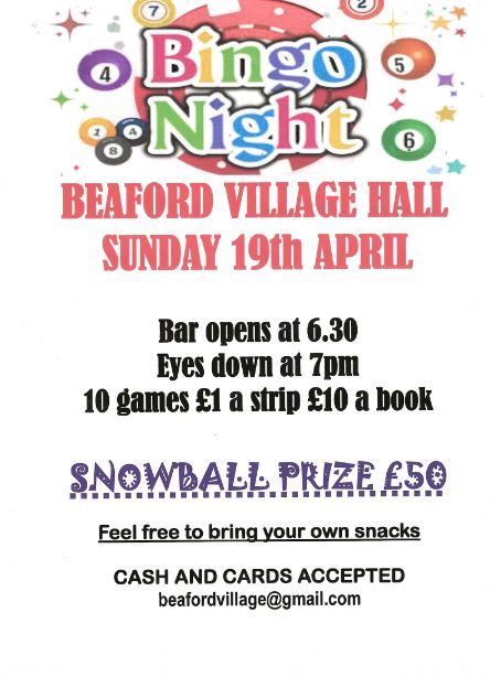 Saturday 18th April – 09:00 until Noon – Beaford’s Big Big Breakfast – Call Jo on 01805 603008 to pre book your table. Large cooked breakfast £10 pp Small cooked breakfast £5 pp Toast & tea or coffee to accompany . Vegetarian option available