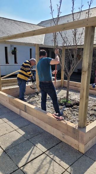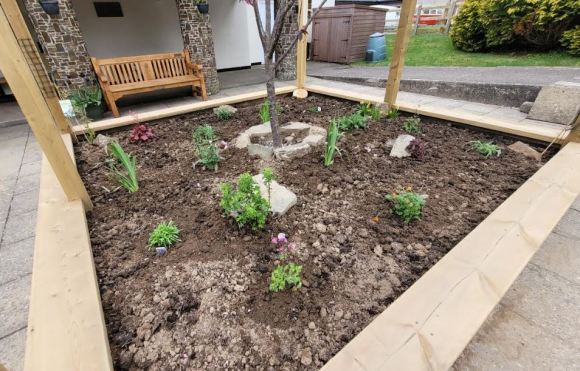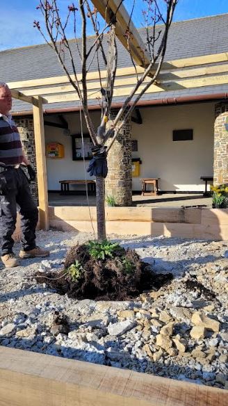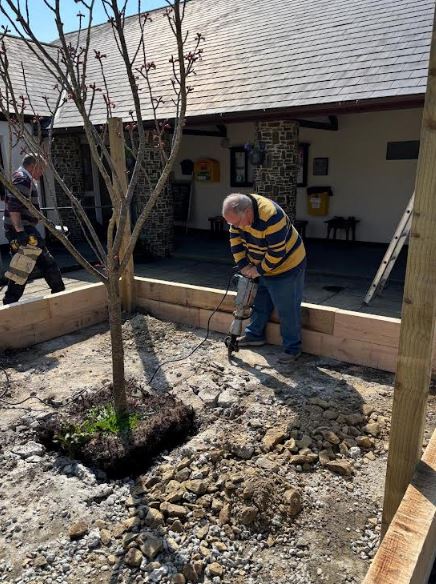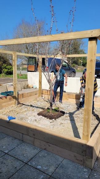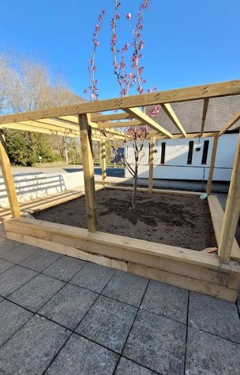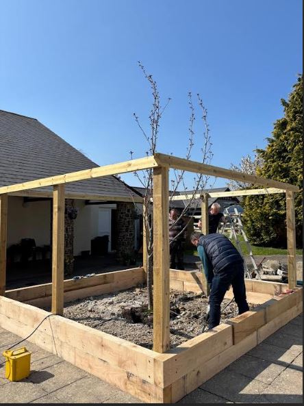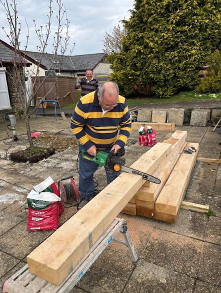 Outside Space Transformation – Spring ’25 Dennis on the loose with a chainsawConstruction beginsTree being raisedAnd relax…….